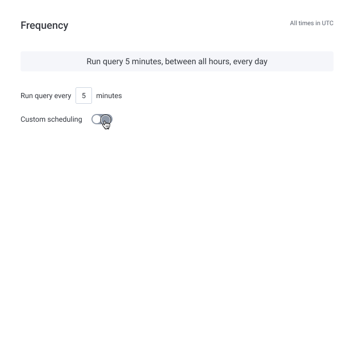 An interesting topic that came up during our discussion was around the use of cron, which the team originally proposed as a way for users to write their Trigger schedules. Our team had a hunch that cron wasn't a universally-understood tool for our user base. We decided to test our hypothesis by conducting moderated interviews with users. While presenting a clickable low-fidelity prototype, we asked how they would customize a window of time for their Trigger query to run.