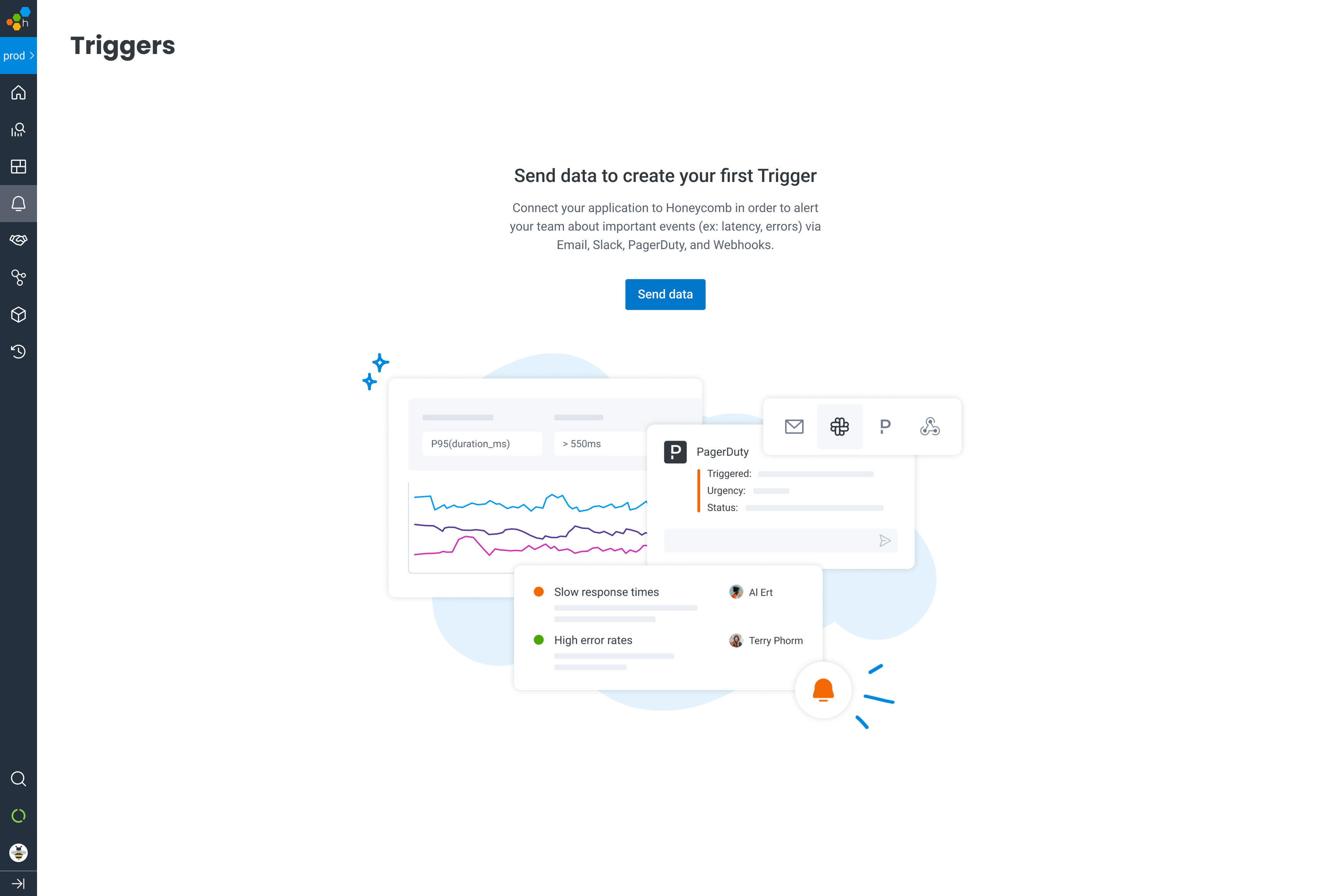 A new empty state for teams who haven't yet sent their application's data features a branded product illustration