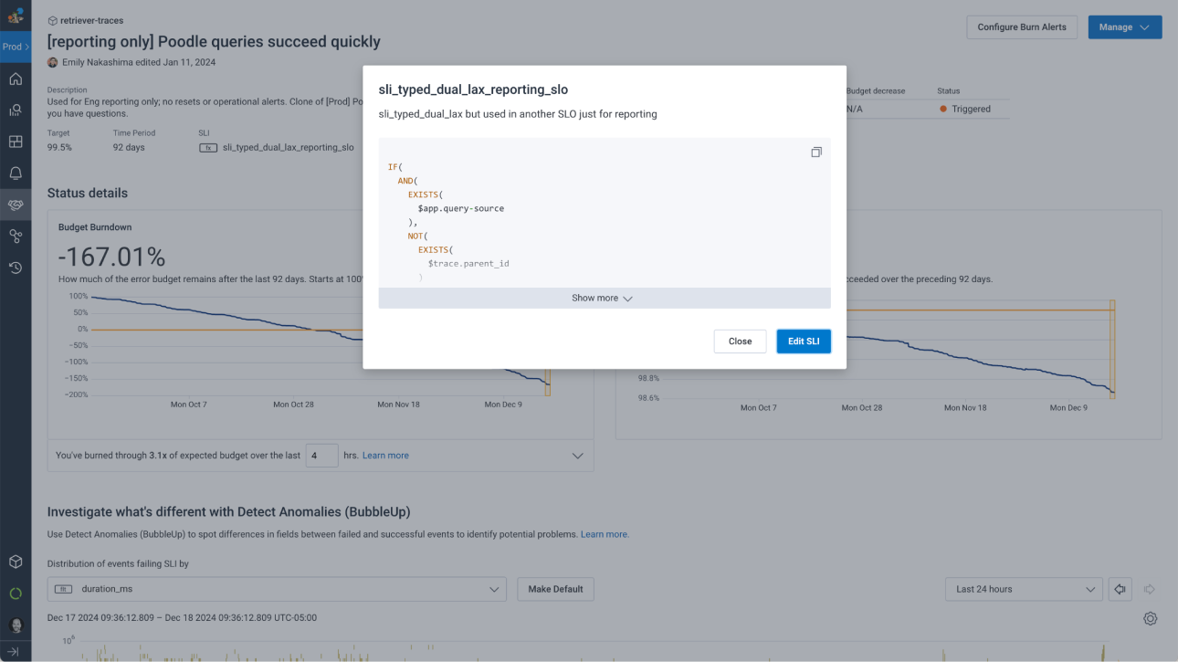 We brought SLI creation and edit capabilities to a modal window that sits above the SLO creation page, so that users never have to leave their flow.
