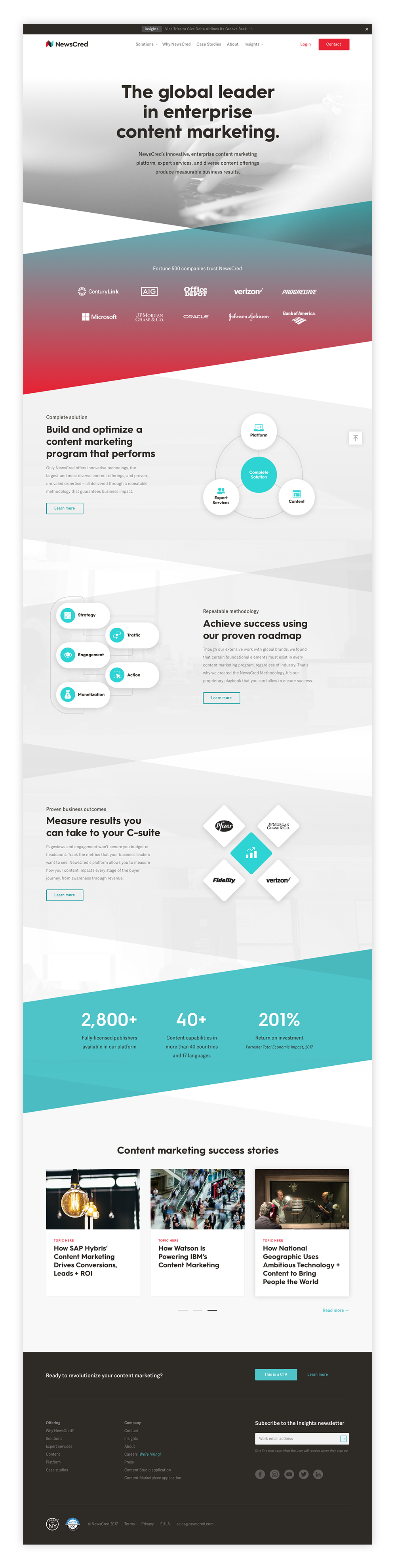 In Q3 of 2017, I worked with the Leadership, Marketing, Product, and Customer Success teams to redesign our website's framework and update all of its content. The previous site was a result of urgent band-aid fixes and new pages that were added without consideration for the rest of the site. As a result, the site: featured outdated messaging and brand positioning with little mention of our core offerings; had extraneous pages in the navigation that made the site architecture confusing, resulting in a suboptimal user flow and occasional dead ends; was not SEO-friendly or optimized for lead conversions.