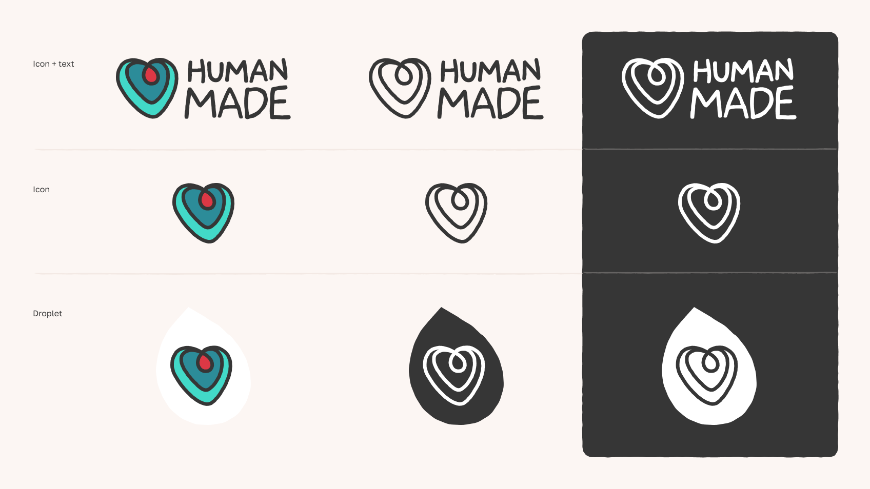 The final Human Made logos shown in numerous formats and colors to suit varying needs.