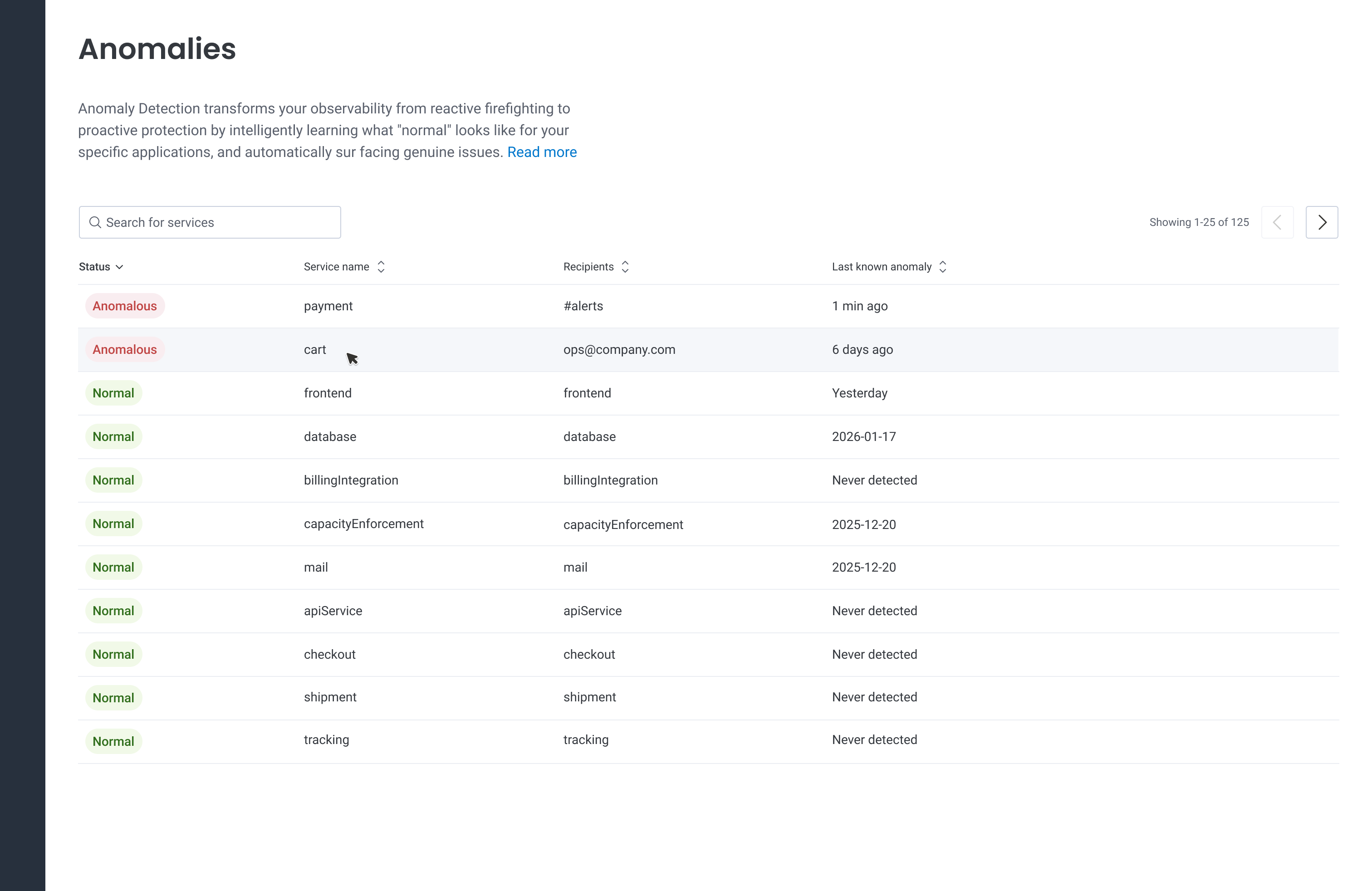 The Signals Team shipped an MVP that learns service data normalcy and automatically surfaces deviations.