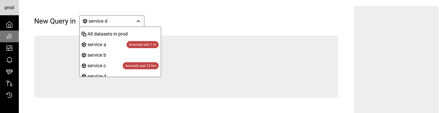 An early vision proposed surfacing anomalies in the service selection dropdown menu on the Query page, to expedite the investigation workflow.
