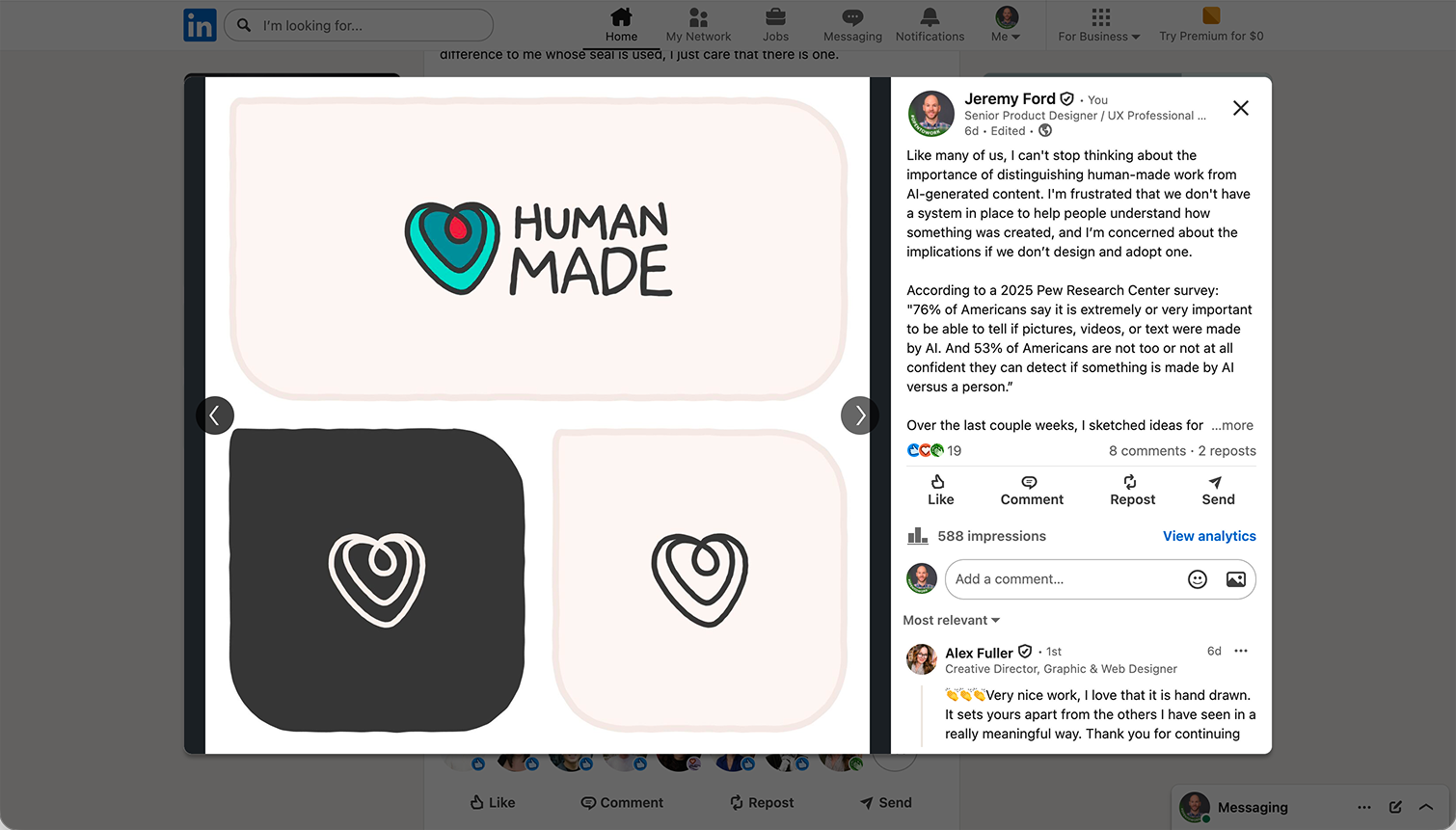 My original LinkedIn post that proposed a Human Made seal people could embed in their work.