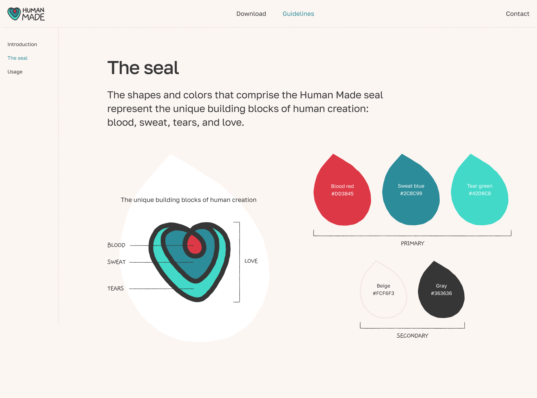 Human Made is a visual seal system that helps internet users understand if the image, video, site, or other visual artifact has been created by a person or AI. Creators can use a micosite to read usage guidelines and download assets like PNGs and SVGs, which they can apply to their work.
